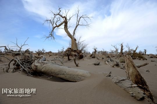 內(nèi)蒙古阿拉善盟額濟納旗沙漠胡楊枯樹林景觀(4月19日攝)。