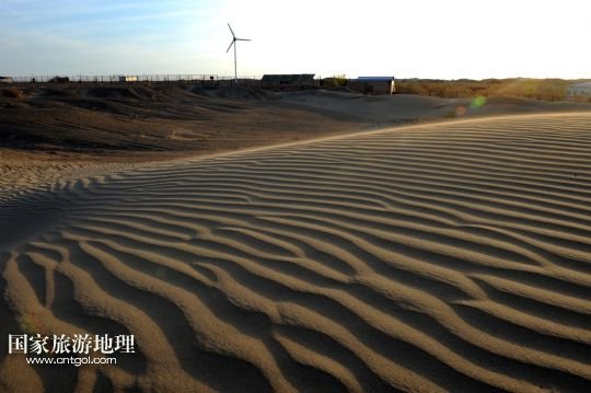 夕陽中的內(nèi)蒙古阿拉善盟額濟納旗沙漠人家(4月18日攝)。